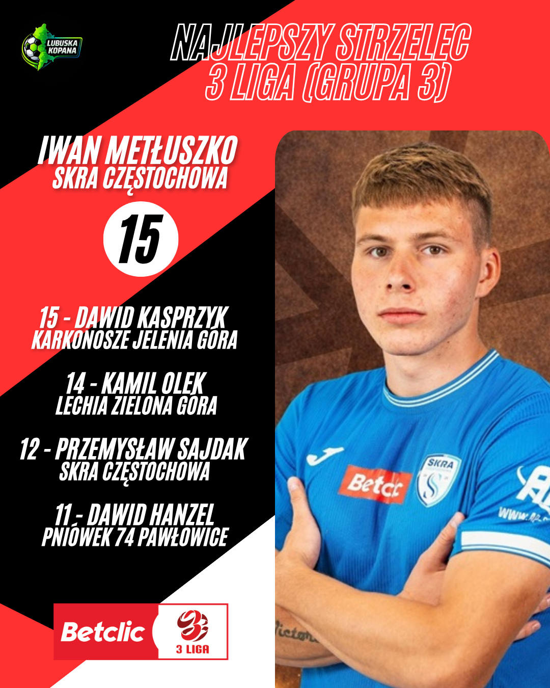 15 Iwan Metłuszko (Skra Częstochowa)15 Dawid Kasprzyk (Karkonosze Jelenia Góra)14 Kamil Olek (Lechia Zielona Góra)12…