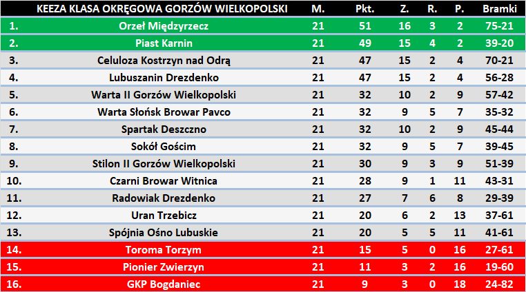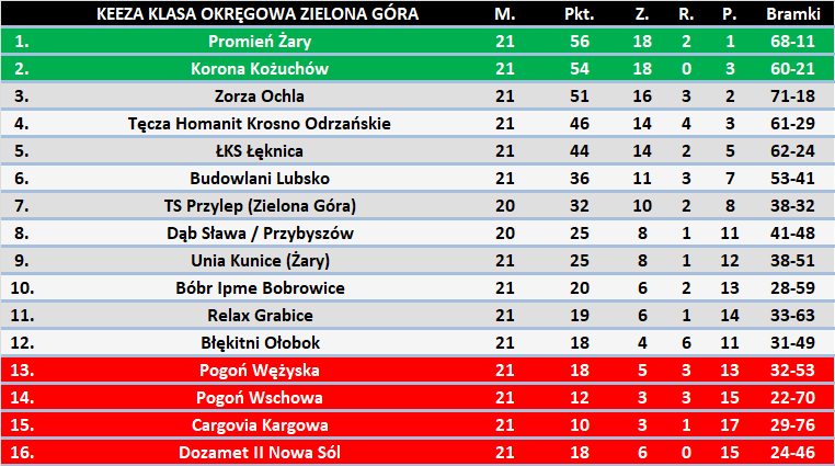 Keeza klasa okręgowa ZG – Czyste konta bramkarzy po 20 kolejce