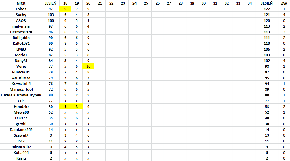 Liga Typerów Lubuska Kopana…wyniki 20 rundy…