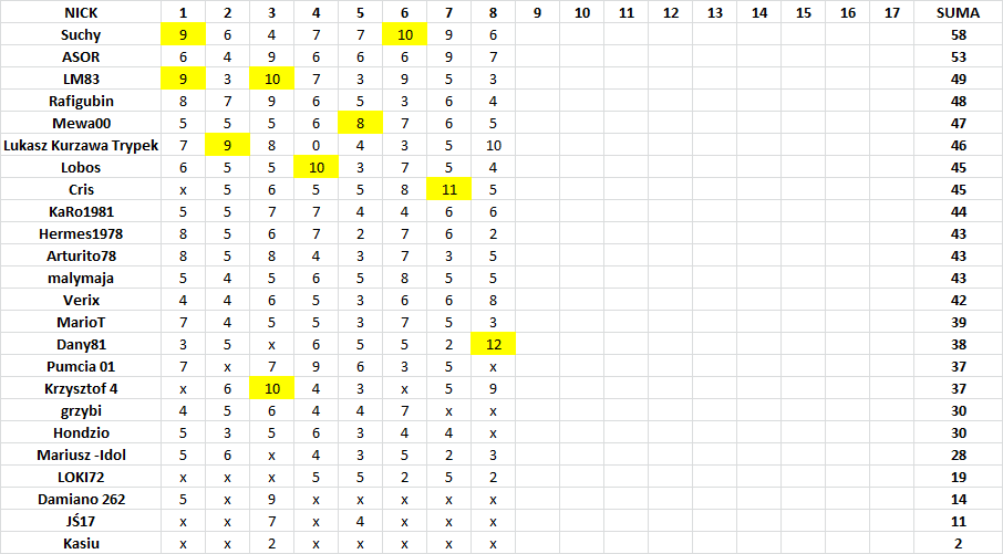 6 edycja naszej zabawy Liga Typerów Lubuska Kopana…zwycięzcą 8 rundy został typer o nicku Dany81 , który uzyskał 12 pkt…W klasyfikacji łącznej po 8 rundach prowadzi Suchy – 58 pkt.