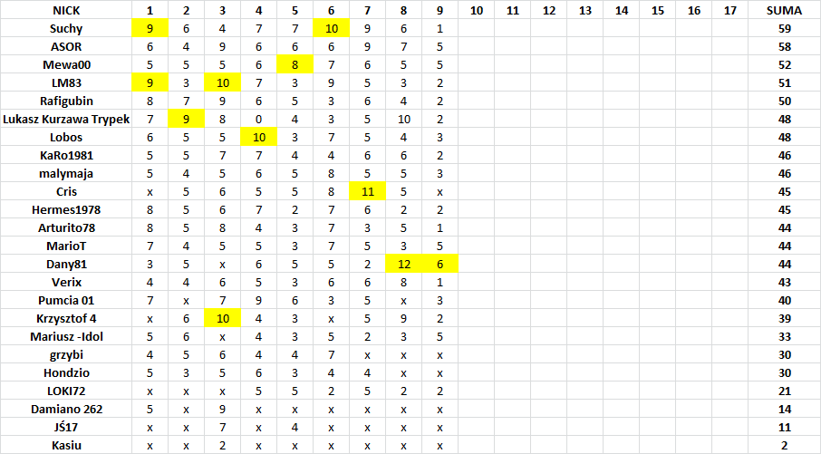 6 edycja naszej zabawy Liga Typerów Lubuska Kopana…zwycięzcą 9 rundy został typer o nicku Dany81 , który uzyskał 6 pkt…W klasyfikacji łącznej po 9 rundach prowadzi Suchy – 59 pkt.